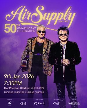柔情搖滾傳奇 Air Supply 即將於 2026年1月9日重返香港,帶來他們成軍50週年的世界巡演演出。演出地點為麥花臣場館,這將是一場充滿懷舊與經典旋律的演唱會之夜!