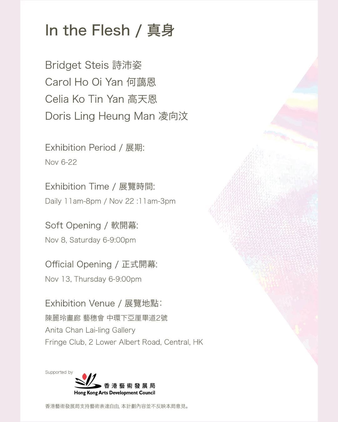 香港四位傑出女性藝術家聯手帶來系列展第二章!延續《膚淺》主題,《真身》深入探索外表下的真實 —— 何藹恩以怪誕色彩揭開社會表象,高天恩用氣泡紙與女性胴體談「物化」,凌向汶憑超寫實肖像捕捉人性情感,詩沛姿則以纖維藝術賦權女性。