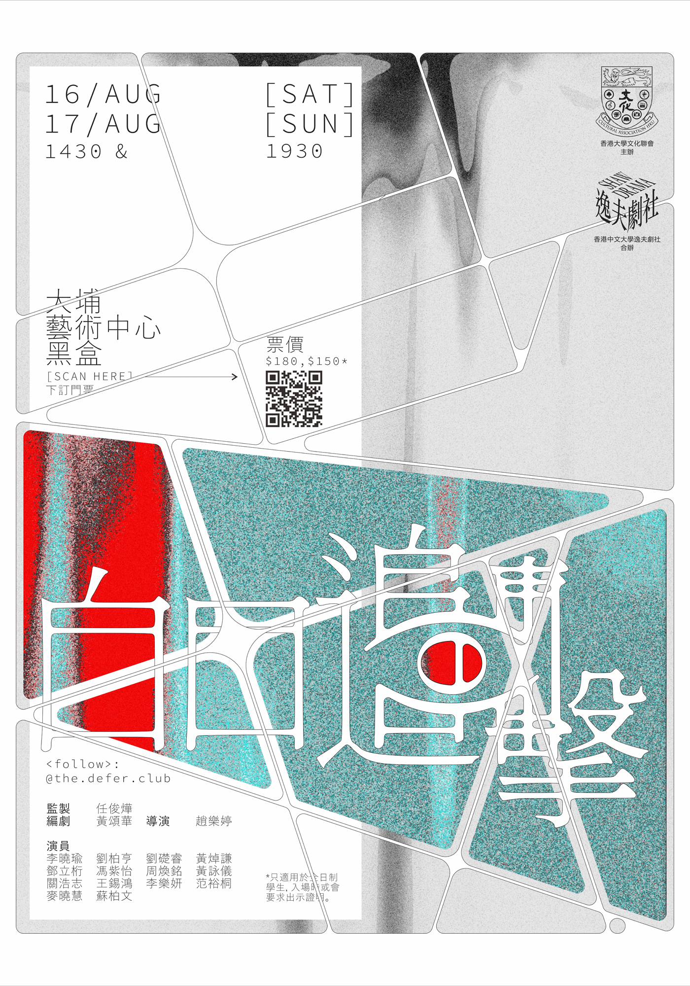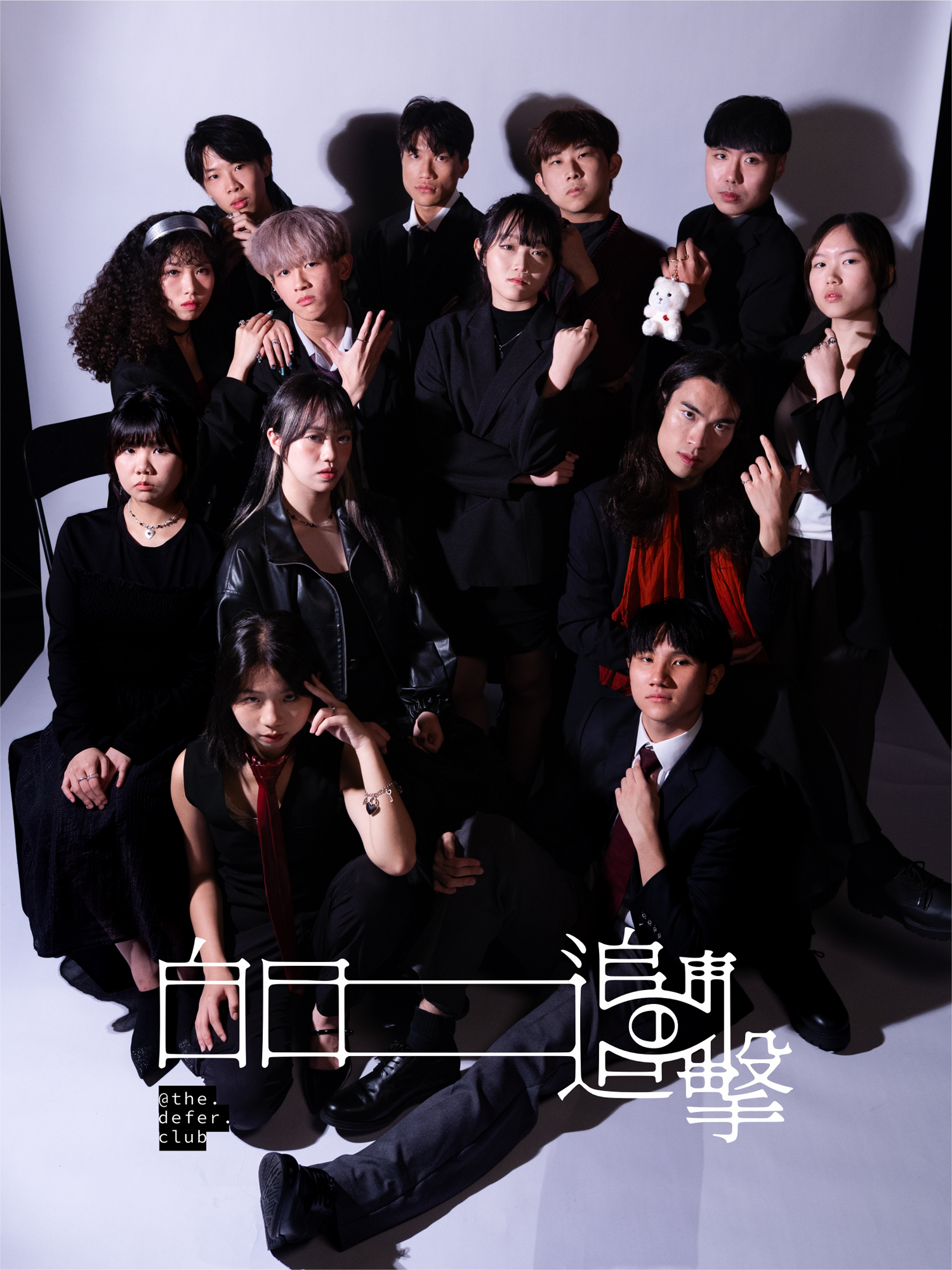 TheDeferClubProd是一群大專生想藉着戲劇,去總結由起初直到此際經歷的一個製作,成員活躍於不同大專劇社,直至成長後不止於大專劇社,所以我們願意一邊學習一邊實踐。《白日追擊》為我們第一次的舞台劇製作,日後或許會有更多。