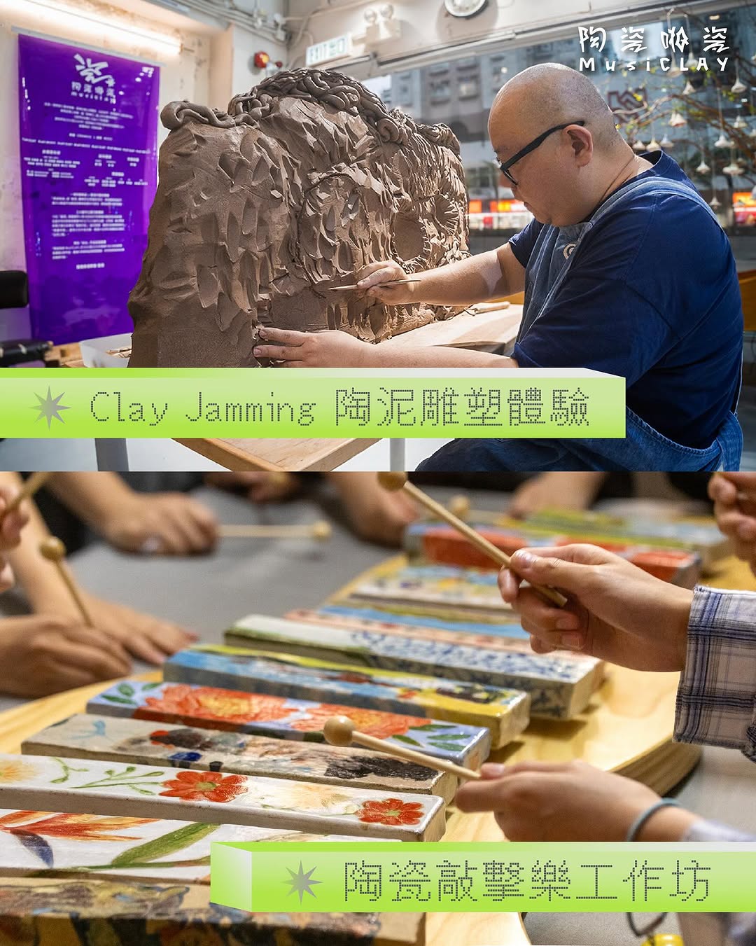 活動設有五大亮點:親手參與的Clay Jamming 陶泥雕塑體驗、節奏感十足的陶瓷敲擊樂工作坊、互動感滿分的藝術裝置展示、由本地樂隊The Hertz帶來的壓軸音樂表演,以及回顧整個創作歷程的MusiCLAY 計劃展覽。無論你是藝術愛好者、街坊街里,還是初次接觸陶藝的朋友,都能在這場活動中找到屬於自己的節奏與感動。