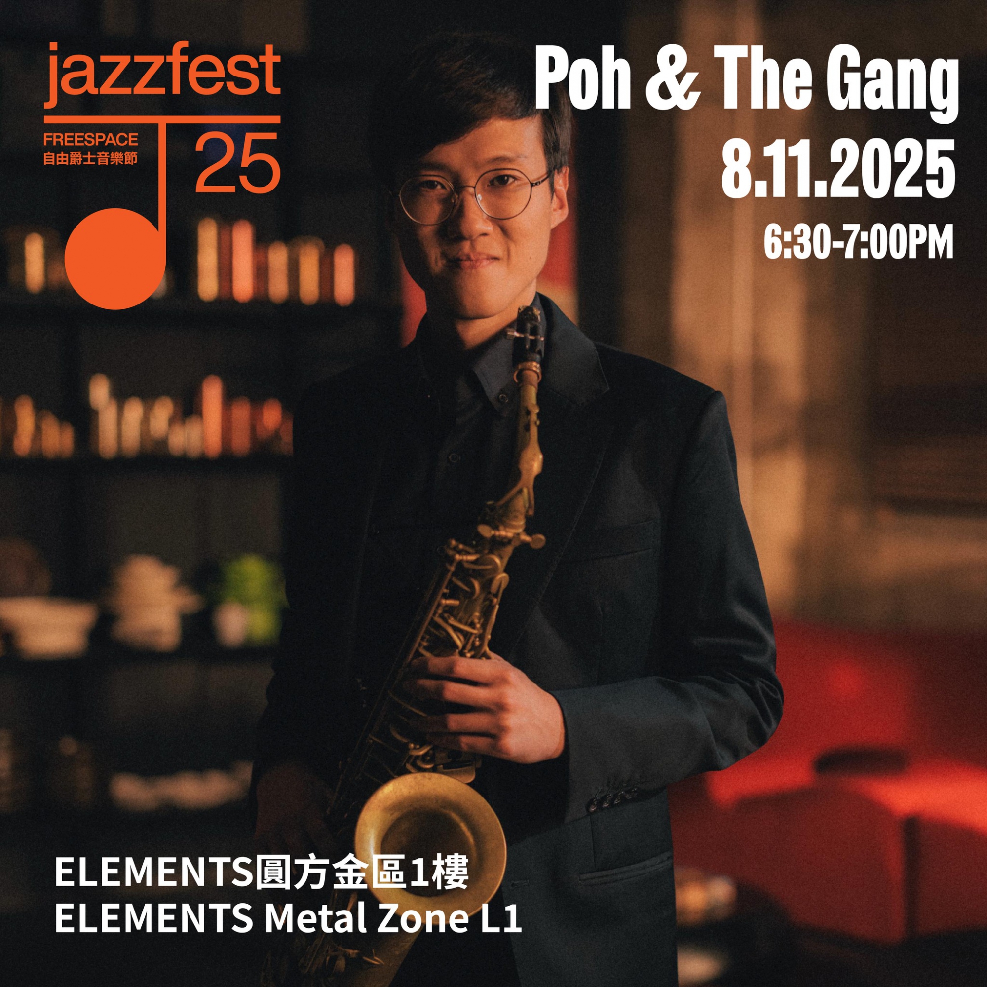 今屆自由爵士音樂節突破舞台界限,首度與ELEMENTS圓方攜手,於11月7至9日將自由爵士的即興魅力從西九文化區一路延伸到ELEMENTS圓方及香港站港鐵藝術舞臺!