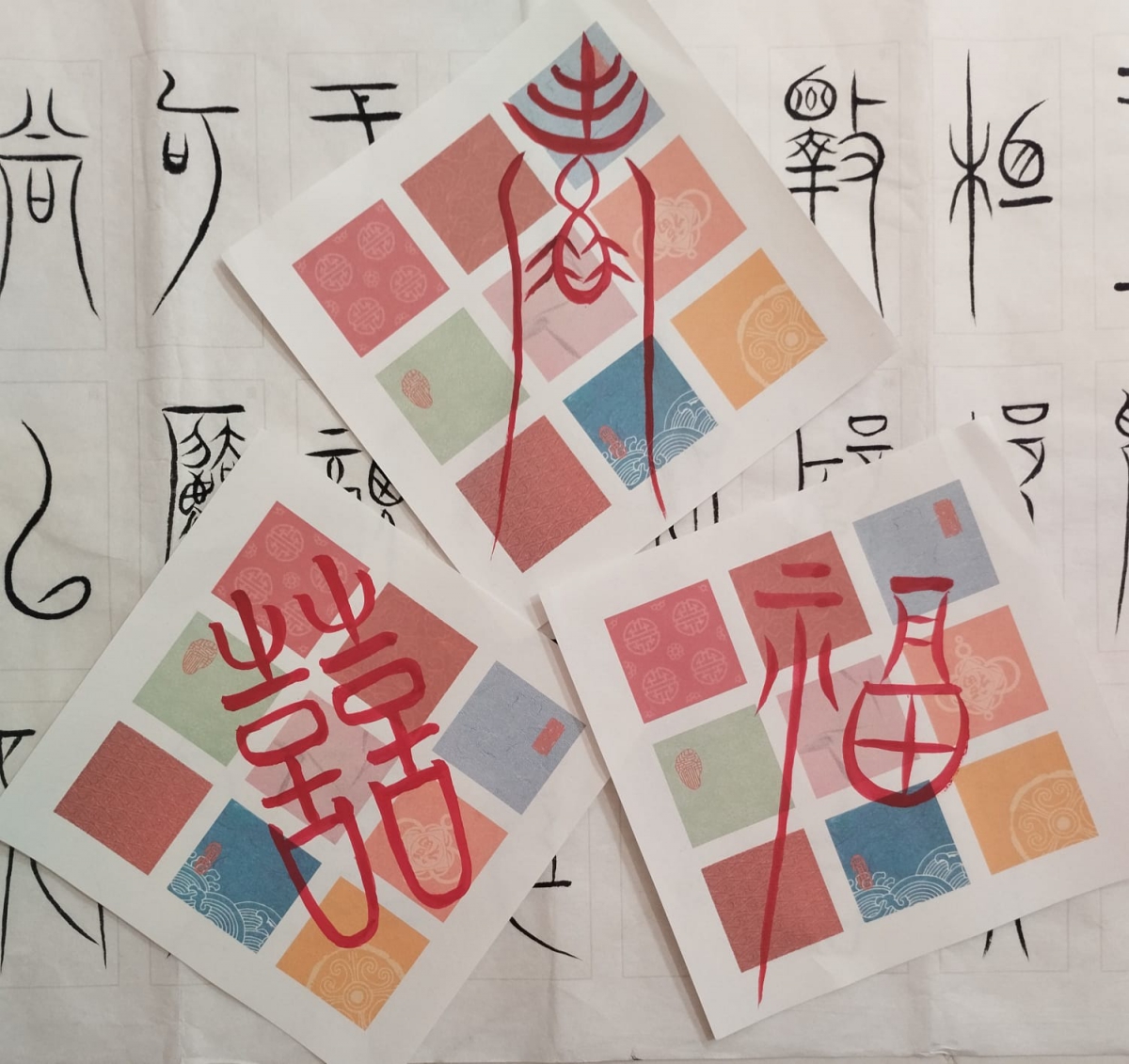 中山篆的臨摹字帖,體驗控筆技巧寫出字型體態修長,廋勁精美,融入專注和喜悦境界,創作出被譽為中國最美古文字中山篆"福壽喜"。