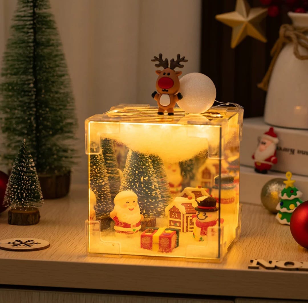 工作坊製作聖誕雪地鏡子魔方小燈盒,親手打造獨一無二的小宇宙,走進童話世界。魔術方塊造型設計獨特,既實用又具有裝飾性,增添空間的趣味性。小燈盒柔和的燈光,適合作為小夜燈,營造舒適的氛圍,適合臥室或客廳使用。