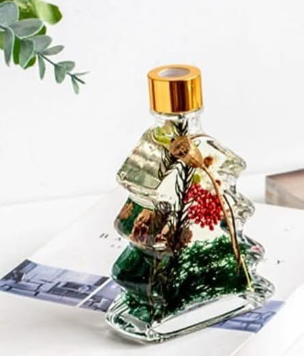 聖誕我們會把浮遊花放進聖誕樹造型的玻璃瓶內 ,加上我們的祝福, 靜觀浮遊花飄來當去的模樣, 享受一個充滿祝福的平安夜。 浮游花瓶工作坊起源於日本的浮游花 ( Herbarium ),這是一種以植物標本的鑒賞品。浮游花瓶展示花材最美麗的模樣,配上專用的礦物油,將各種花材保存在玻璃瓶內。