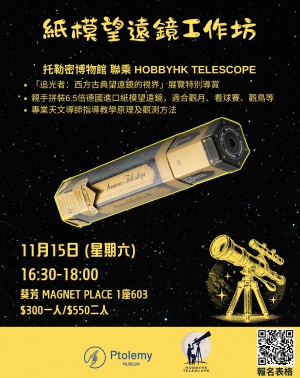 紙模望遠鏡工作坊-托勒密博物館xHOBBYHK TELESCOPE聯動活動托勒密博物館