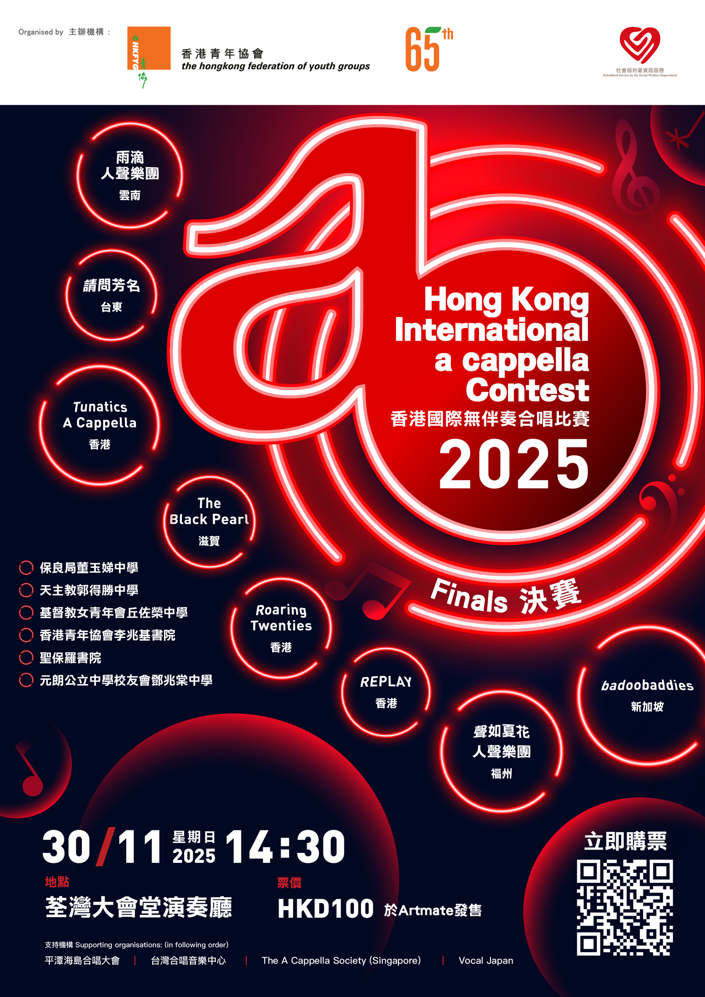 一年一度的學界和無伴奏合唱盛事,香港青年協會 「香港國際無伴奏合唱比赛2025」決賽火熱來襲。