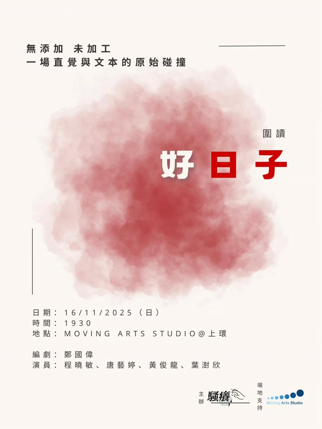 無添加 未加工一場直覺與文本的原始碰撞一群演員正圍讀《好日子》,與觀眾共同探索未知。