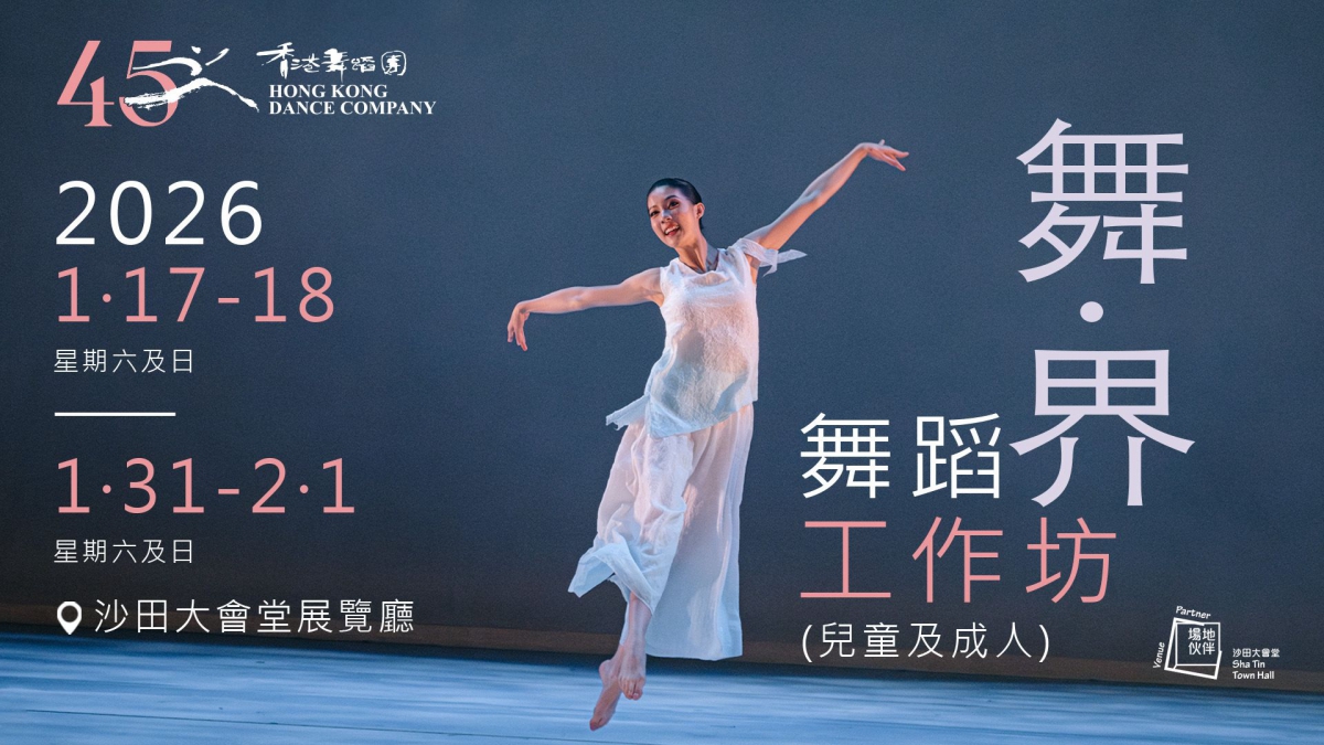 香港舞蹈團場地伙伴計劃將於2026年1至2月假沙田大會堂展覽廳舉辦一系列兒童及成人舞蹈工作坊,透過這次的活動,使更多舞蹈愛好者一同參與,將舞蹈拓展到不同的地區。名額有限,報名從速!