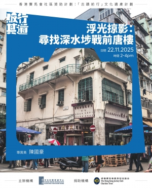 本次導賞團邀請唐樓研究者陳國豪,帶領大家從20世紀初期出發,探討深水埗隨著社區變遷,部分唐樓如何經歷改變,以回應不同時期居民的需求,並且會走訪這些唐樓的商戶,了解他們如何看待這些戰前唐樓的歷史價值,以及他們與唐樓的故事。