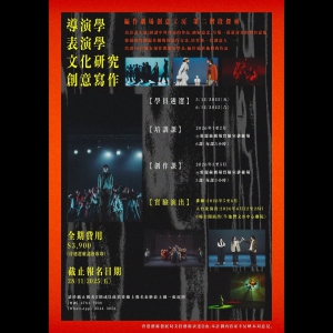 編作劇場創意工房2.0 學員招募導演學|表演學|文化研究|創意寫作編作劇場創意工房2.0以詩為主題,研讀中外作家的作品,抽取意念,呈現一幕幕詩化的舞台意象。發展和實踐編作劇場的創作方法,培訓18位擁有創作潛能的學員,編作屬於他們的作品。遴選時間:2025年12月5日(五)、12月6日(六)活動時間:2026年1月—2026年6月