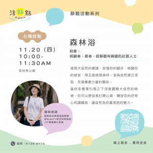 森林浴快將滿額,有興趣記得盡快報名,把握療癒身心的機會!