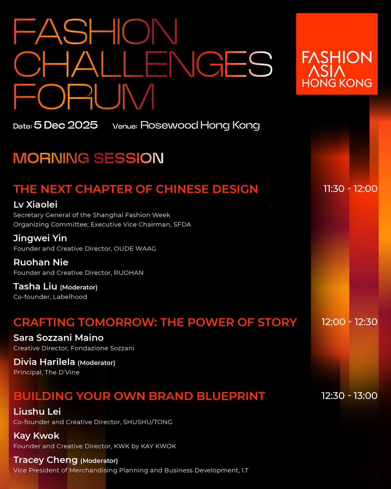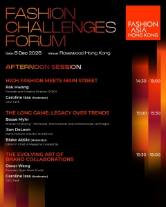 - 設計師對談:亞洲及全球新銳與資深設計師齊聚,暢談他們在時尚舞台的成功歷程與創作初心