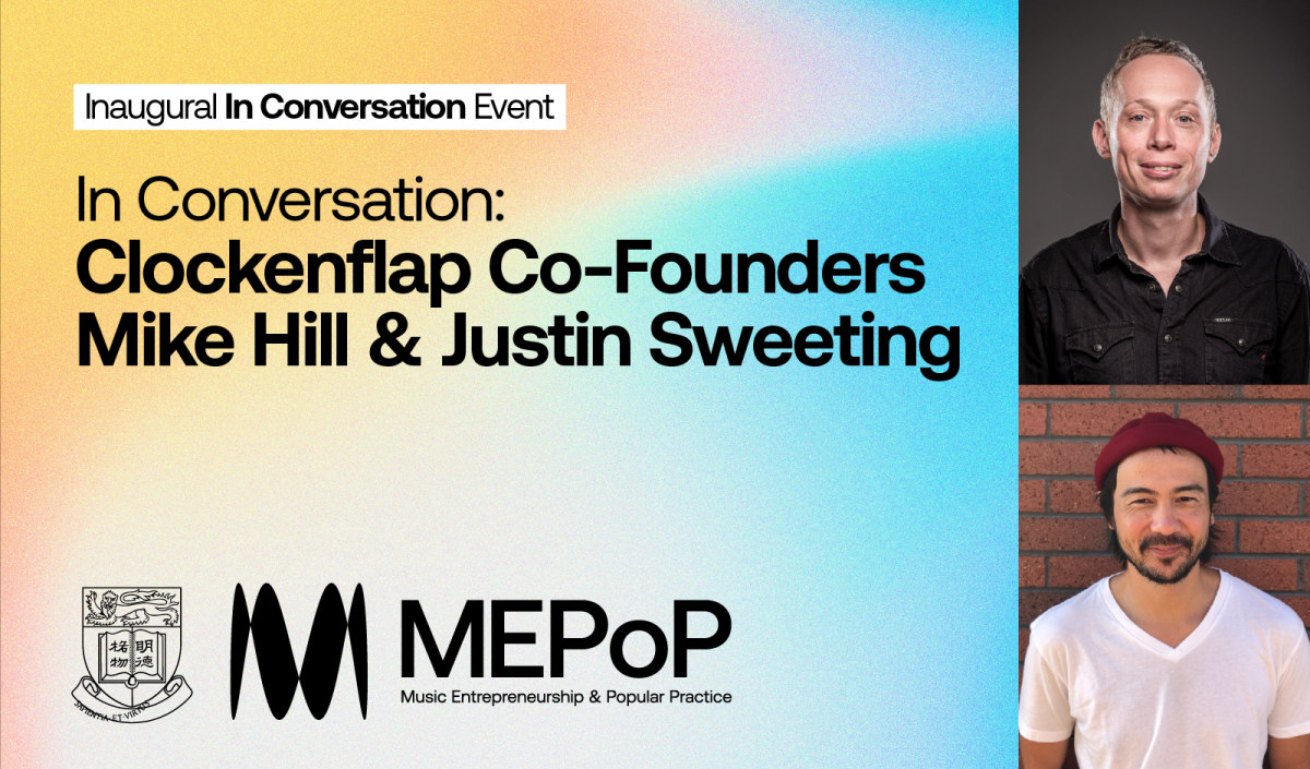 Launched in 2008, Clockenflap represents one of the Hong Kong music industry's biggest success stories. HKU's Music Entrepreneurship & Popular Practice ( MEPoP ) invites Co-Founders Mike Hill ( CEO ) and Justin Sweeting ( Head of Music ) for a conversation on local entrepreneurship, international curation and what's next for Hong Kong's flagship music festival.