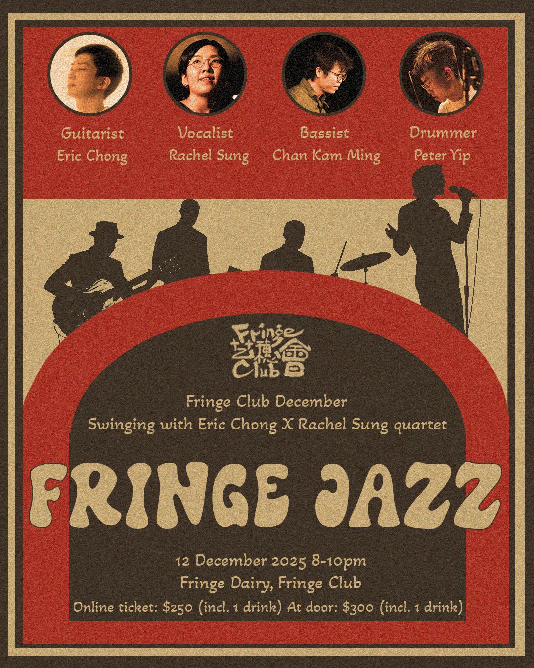 這個冬天準備好投入爵士樂的溫暖懷抱了嗎?12月12號,Eric Chong X Rachel Sung四重奏將登陸藝穗會,帶來11首歷久不衰的爵士樂曲,讓現場演奏的醇厚之音,把你帶回唱片的年代~票價包含一杯飲品,讓心情跟著音符微醺,這就是週末應有的 vibe~!