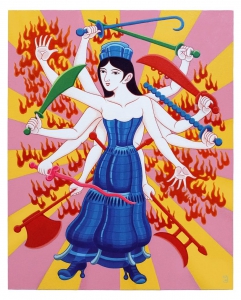 香港JPS畫廊隆重呈獻本年度的重頭戲,香港著名藝術家石家豪的個人展覽「關公大戰石家豪」。今回的主角是三國時期的傳奇人物關羽(西元160-220年)。關羽作為中國歷史上最具代表性的武神之一,通常被描繪為一位穿著戰甲、手持青龍偃月刀的英雄。在石家豪的演繹下,這位古代英雄不再是冷冰冰的歷史人物,而是一個穿越時空邊界的經典藝術符號。要與關公對决,石家豪的標誌性香港建築人物也會粉墨登場。她們披上香港的特色建築物,手握傳統兵器,為當代與傳統作戰。