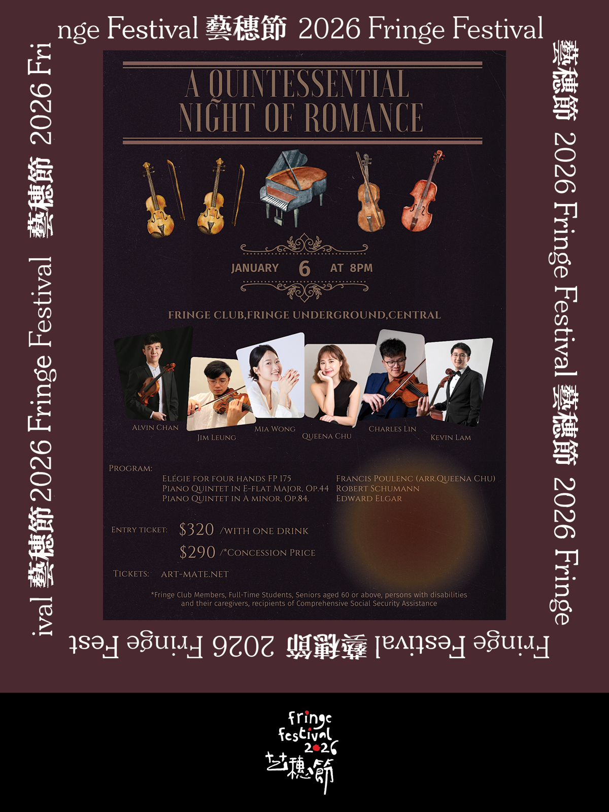 Elégie for four hands FP 175 (Francis Poulenc, Arr.Queena Chu)Piano Quintet in E-flat Major, Op. 44 (Robert Schumann)Piano Quintet in A minor Op.84 (Edward Elgar)