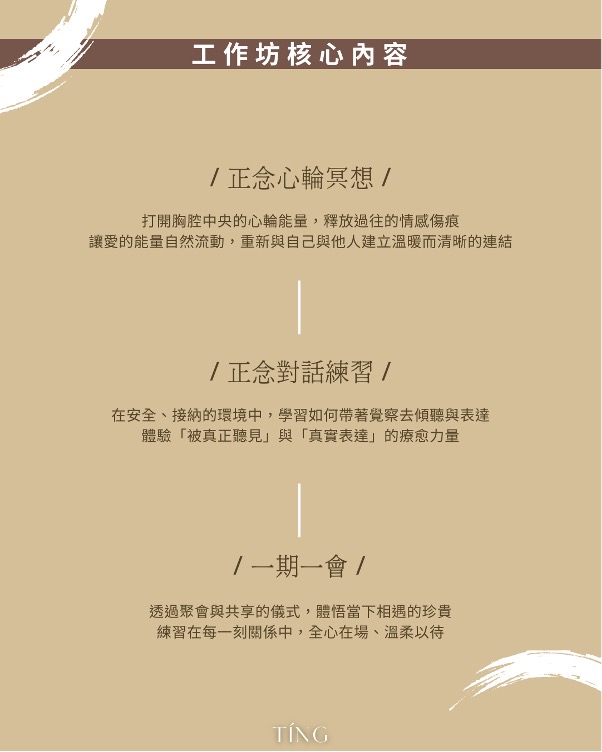 這個冬天,讓我們重新學會「怎麼愛」,透過正念對話與心輪冥想,探索愛的流動,12月12日晚,庭談美將陪你開啟一場關於「愛」的溫柔對話。