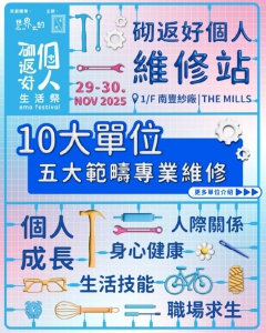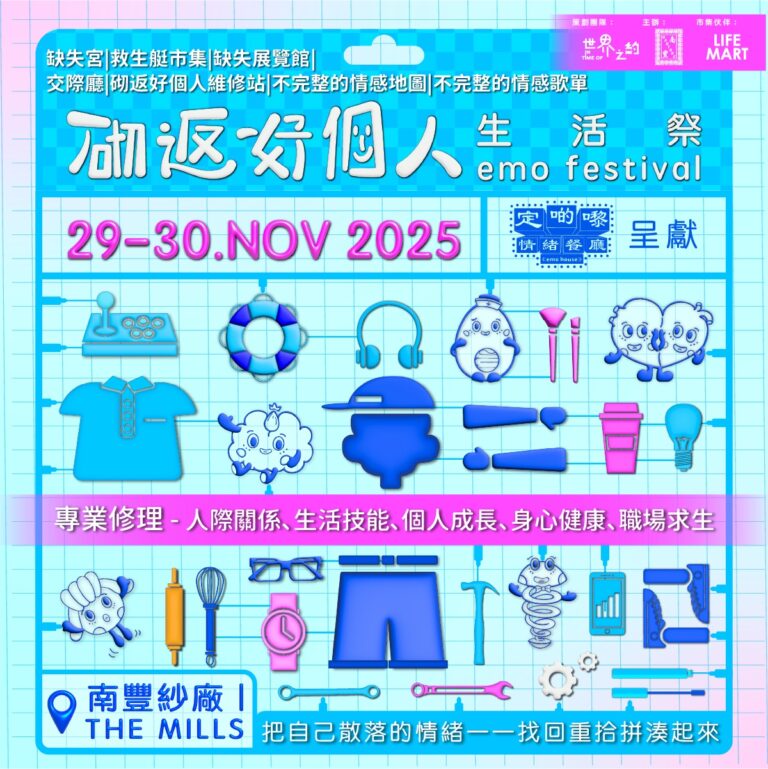 「世界之約」以可持續發展、社區設計與文化創意為核心,透過多元活動連結社區。繼去年年底於啟德發展項目AIRSIDE推出期間限定「世界之約:定啲嚟情緒餐廳」,今年再度出發,於11月29及30日在南豐紗廠舉辦「砌返好個人生活祭2025」活動,以創意、音樂與體驗活動,陪大家整頓生活步伐,打開感官與內心,一齊拼湊屬於自己的生活方式。