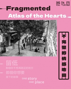 記錄了城市裡不同街道發生過的情感故事,過去一個月於社區中透過名信片收集大家的故事,那個使你想要逃離那街道的原因。每一個故事將結合代表著不同地區的色彩氣球化成這個城市中缺失的一塊碎片,凑拼起來成為一幅屬於這裡的「不完整的情感地圖」。希望大家也將故事留低,從地圖中或許可以找到你的同路人。