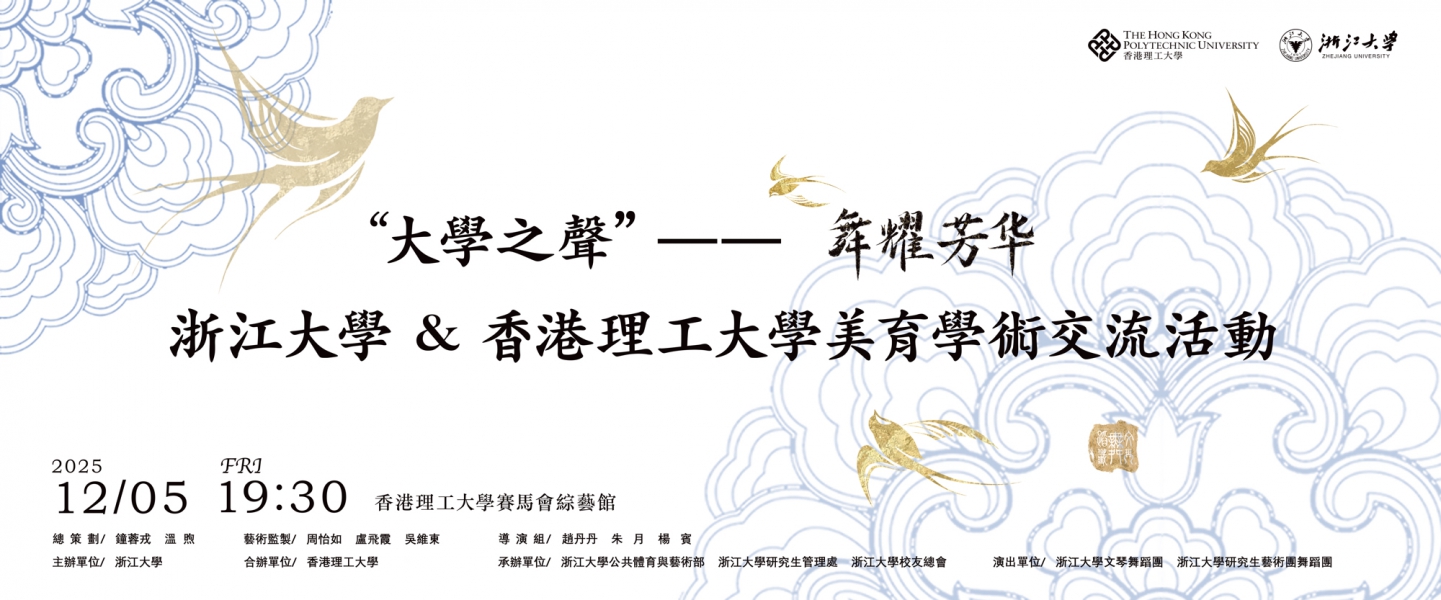 值此香港回歸祖國28週年之際,浙江大學文琴藝術團舞蹈團、浙江大學研究生藝術團舞蹈分團將赴香港理工大學交流演出,此次《舞耀芳華》專場演出是浙江大學「大學之聲」高水平藝術展演系列演出的階段性成果,由浙江大學40余名師生攜手自主打造。以舞為媒,交流兩校文化的多彩多姿;芳華綻放,書寫大陸與香港血濃於水的同胞親情。山河無垠、日月同天,兩校、兩地的友誼在舞動的樂章中綿延長存。沉痛哀悼大埔火災遇難者