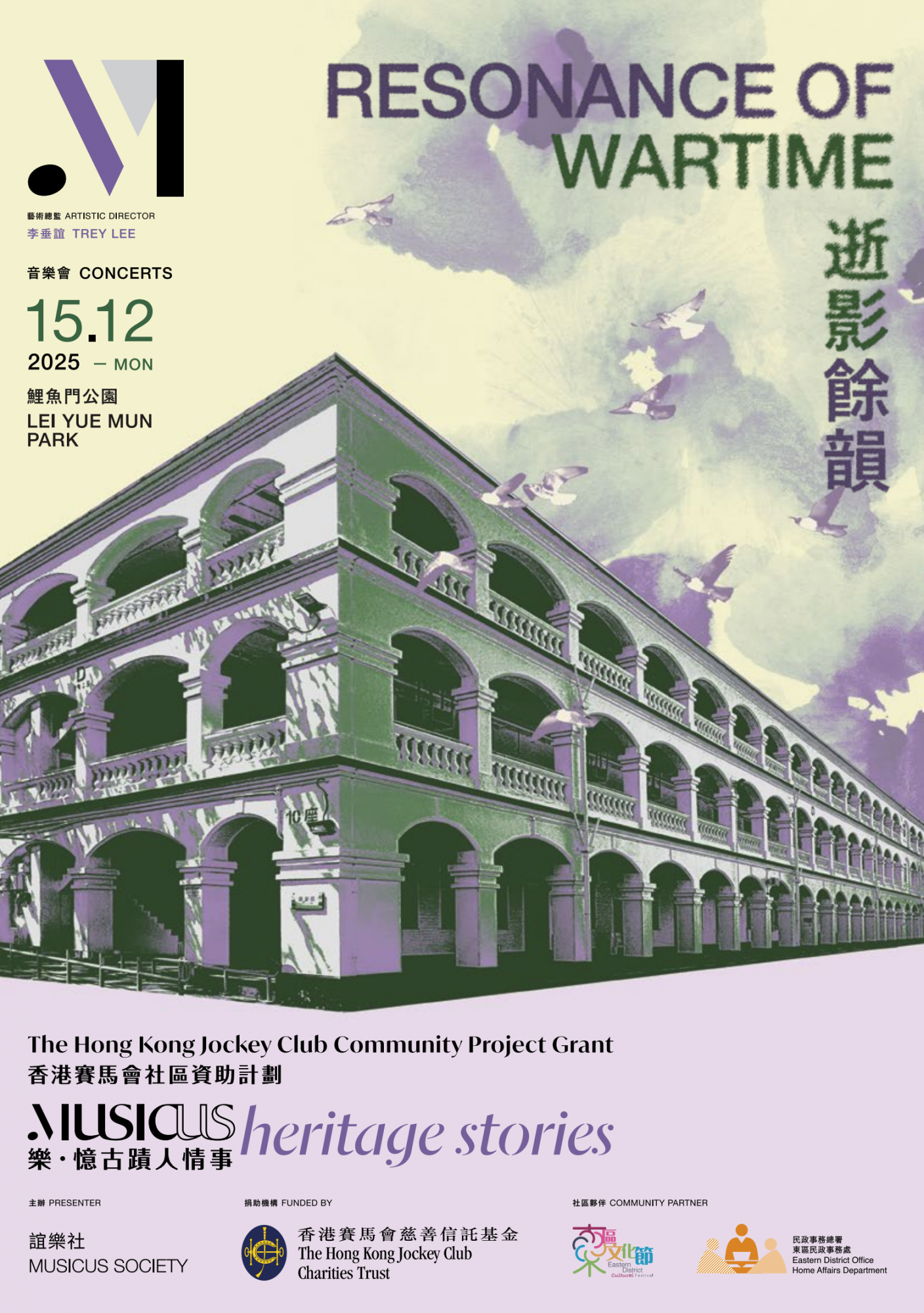 除音樂演出外, 誼樂社更邀請「考城學社」策劃特別導賞及展覽,呈現東區二戰歷史與社區變遷,緊扣地區歷史脈絡。 這趟融合音樂與歷史的文化探索之旅,將引領觀眾在動人樂聲中,感受時代留下的獨特印記。