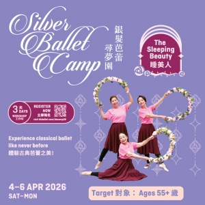 香港芭蕾舞團將於2026年復活節再度舉辦充滿活力的「銀髮芭蕾尋夢園」,並以經典舞劇《睡美人》為主題!我們誠邀55歲或以上的人士,於香港文化中心展開三天的芭蕾之旅,深入探索美麗的奧羅拉公主的故事。