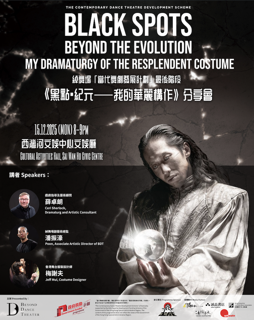 在舞台燈光亮起前,每一個意念、每一次碰撞,都是創作的起點。綽舞場將於2025年12月15日於西灣河文娛中心文娛廳內舉辦演前創作分享會,帶領觀眾從戲劇指導、舞者及設計師角度出發,展開一場關於舞蹈及舞劇演出的深入對談,一窺橫跨三年的藝術計劃。戲劇指導將拆解如何從文本中提煉情感;舞者將分享如何將抽象哲思,轉化為足以撼動身體的內在動力;而設計師則會揭露如何用服飾,共同編織出那個如夢幻泡影的未來世界。