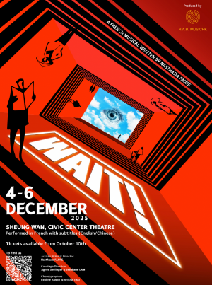 WAIT!, written and directed by Nasthasia Faure, is a French original musical that blends humor, tragedy, and philosophy with vibrant music and choreography.