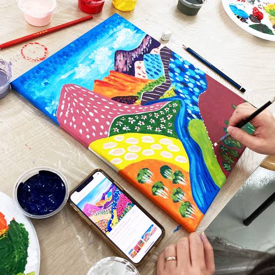 Art Jamming繪畫過程十分療癒,大家可以在畫板上塗鴉自由創作,享受創作的過程,畫出腦海中天馬行空的世界。參加者可以自由借用不同顏色的塑膠彩顏料,並且可以選擇一塊畫布,及借用我們的繪畫工具。