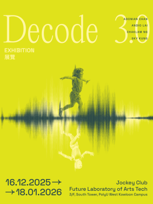 今次展覽Decode 3.0邀請四位藝術家陳濬人,黎仲民,吳澤霖,龔兆鑫,各自從不同的研究方向重新理解、探索「聲音可以如何被觸發」。因此,聲音並非只是結果,而是一套由人設計的行為系統。 他們透過自訂的介面、感知邏輯與行為模式,提出四種聆聽的方式。