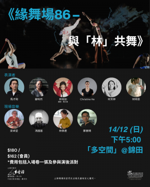 「多空間」自 1998 年起,聯合不同藝術界別人士一同進行跨媒體即興創作,因緣際會,激蕩靈感,因此定名「緣舞場」,三十多年不輟,至今已創作了八十六個系列。在「緣舞場」裡,一切結果、過程都是未知之數,每次演出都不會重覆,就如「緣舞場」強調:「萬事因緣而生,緣盡而散」。只要我們珍惜、感受、經歷……在努力過後,一切就順其自然吧!