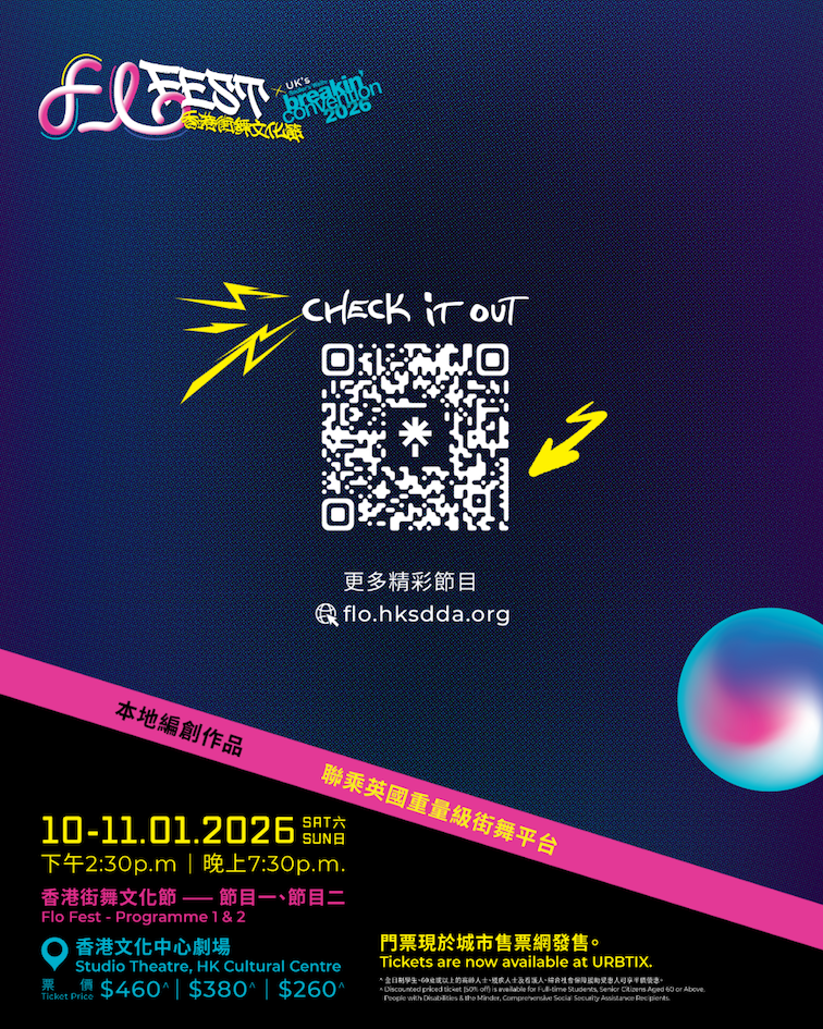 壓軸呈獻:聯乘英國重量級街舞平台 Breakin' Convention,帶來四場精心策劃的演出,集合八位本地新晉編舞的全新作品,並邀請英國及荷蘭舞團呈獻國際級舞作。