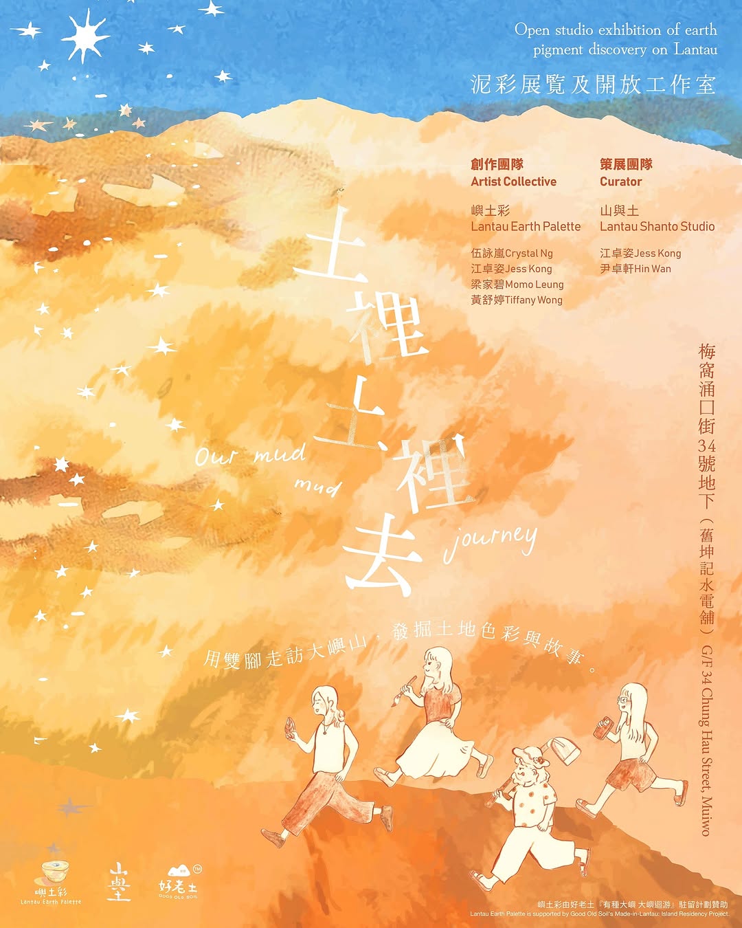 土裡土裡去—— 過去九個月,嶼土彩展開在大嶼山尋找泥彩的旅程。大嶼山的泥土賦予了我們不辭辛勞義無反顧的行動力,成為一個收集大嶼山大地色彩的實驗平台。歡迎大家進入嶼土彩的開放工作室,見證泥彩實驗的製造過程,以及我們以大嶼山泥彩記錄大嶼山生活日常的畫作。