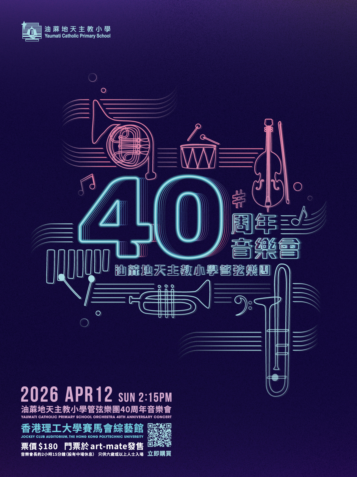 為慶祝樂團成立40周年,校方特舉辦一場「油蔴地天主教小學管弦樂團40周年音樂會」以作慶賀。 音樂會除了有在校生管弦樂團演出外,眾校友亦會參與演出及製作,展現樂團多年來的碩果。希望透過是次音樂會,能凝聚校友、家長、學生對學校及管弦樂團的歸屬感。