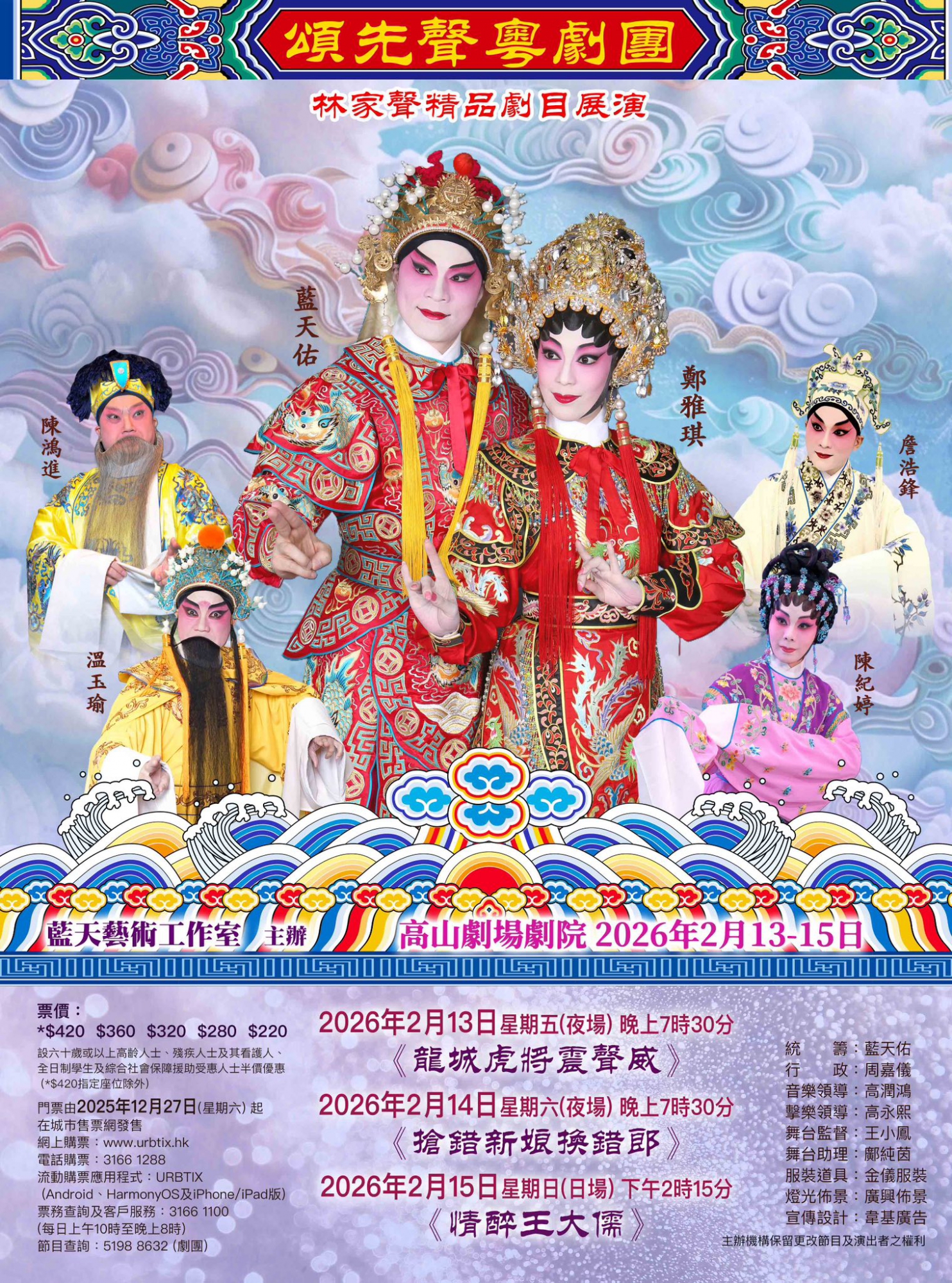 我們今年整理的《狄仁傑三打武元爽》及《韓信一將服群雄》兩齣冷門戲,均有逾九成入座率,深受觀眾歡迎!所以「頌先聲粵劇團」在2026年的首台演出,決定為大家獻上1991年的《情醉王大儒》。這齣從傳統舊劇《王大儒供狀》重新改編的文戲,主角王大儒的性格讓演員有很大的發揮空間,它歌頌主人翁對愛情的嚮往追求和犧牲奉獻,並對當時封建禮教強加諸女性的欺壓予以譴責,作不平之鳴,經聲哥深度的演繹後,成為一套以戲味取勝的粵劇:望門寡婦師生情,一個在當時不為世人所諒的淒慘愛情故事。
