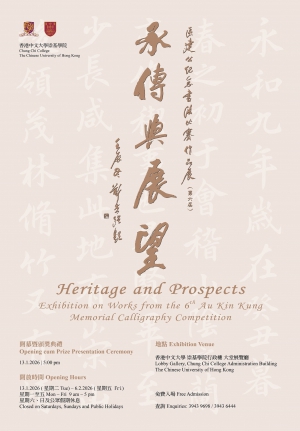 由崇基學院主辦之「承傳與展望──區建公紀念書法比賽作品展(第六屆)」,將於二○二六年一月至二月在崇基學院行政樓大堂展覽廳舉行。