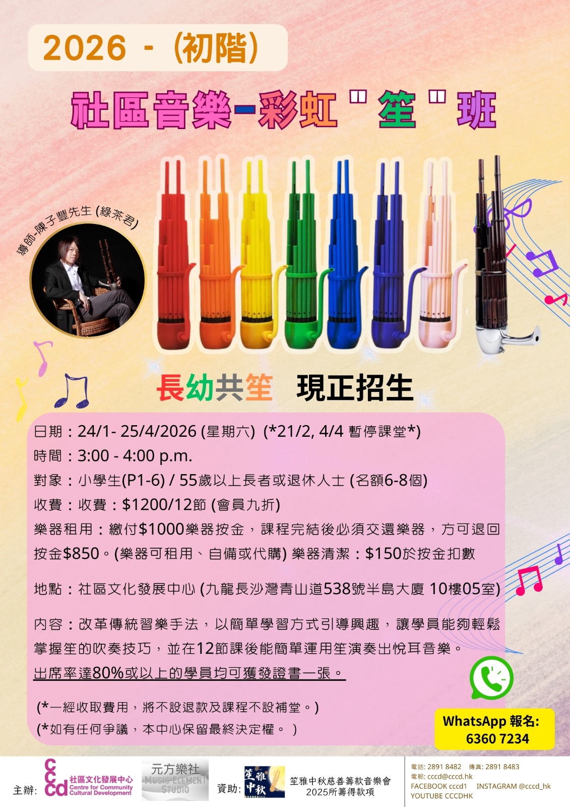 (*課堂表現優秀者有機會獲選加入社區音樂-笙樂隊)