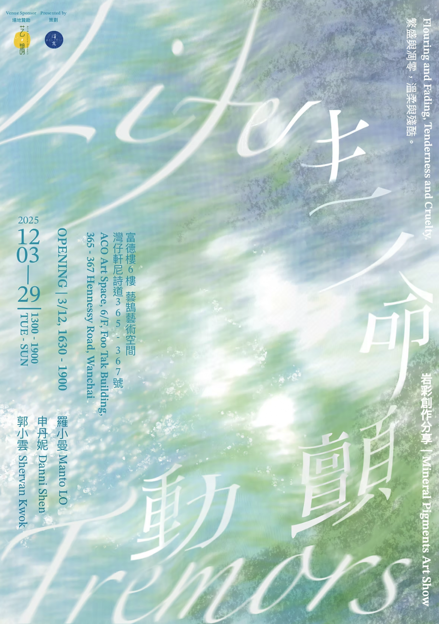 這場展覽邀請您探索生命的多樣性,及其內在的對立與和諧。在這充滿詩意與哲思的空間中,三位岩彩藝術家展出的作品呈現動物和植物共存的情境,以一個旁觀者或參與者的角度描繪這些生命,見證生命的繁盛與凋零、溫柔與殘酷。