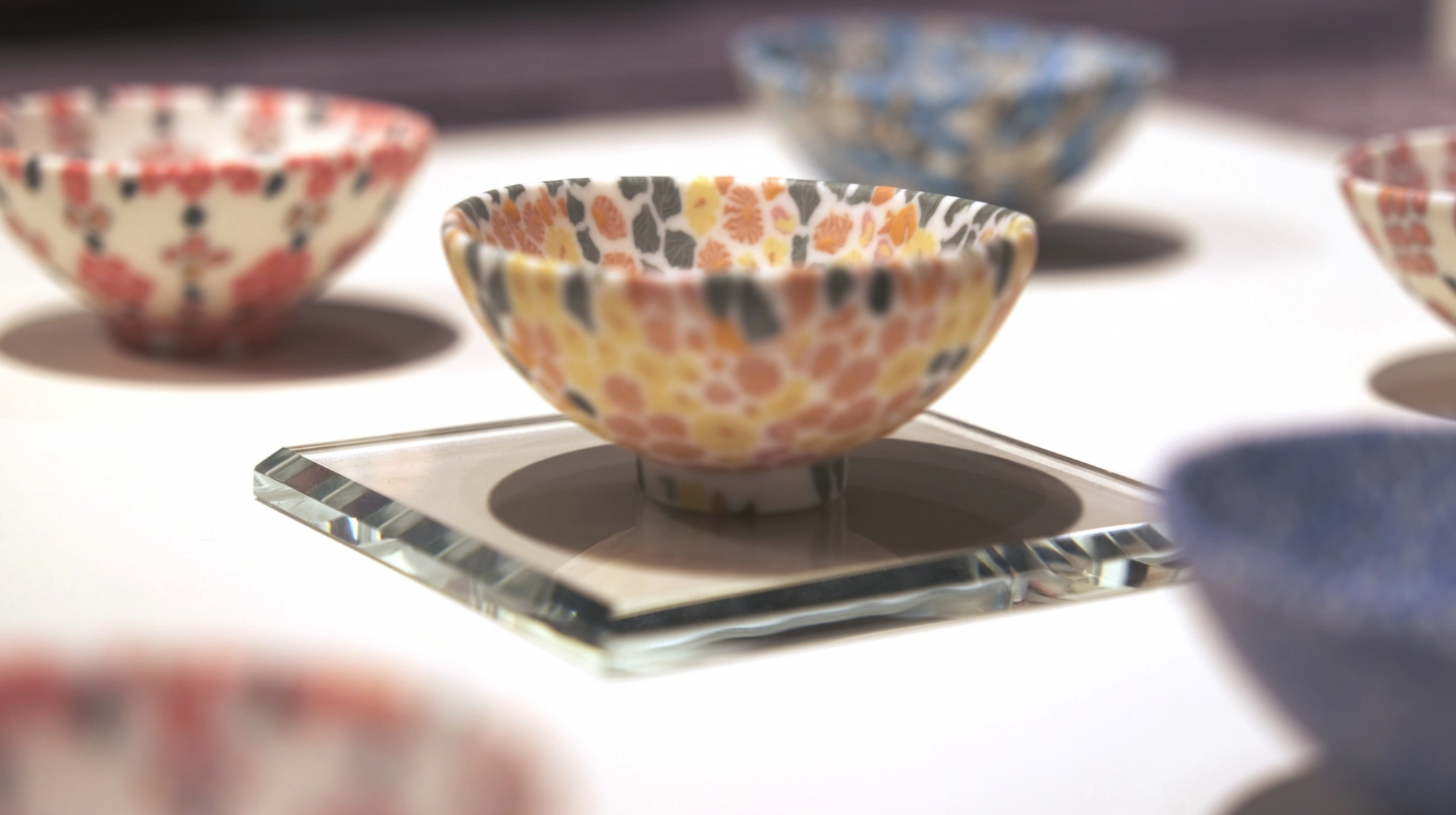 「練上」是一種獨特的陶藝技術,運用不同顏色的陶土組合出美麗的圖案,並在器物的正反兩面展現相同的設計。每一塊陶泥在拉伸、切割或連接的過程中,微小的扭曲為每個圖案增添了獨特的變化。陶藝家們透過重疊的圖案和時間的流逝,創造出精緻的練上陶瓷,讓每一抹泥土都充滿詩意與美感。