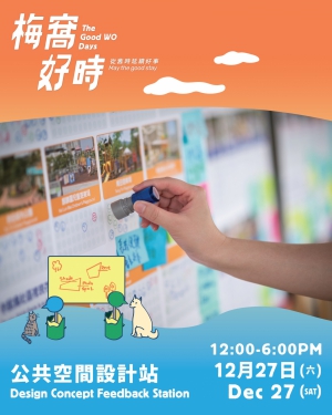 經過數個月的社區參與工作坊及公眾活動,我們了解了更多大家對於梅窩公共空間的功能、活動、設計上的想法和需要。繼上一次公眾活動展示了設計概念,按照公眾的建議進行修改,這次「梅窩好時」公眾活動將再一次作出展示,誠邀您前來了解並分享寶貴意見!