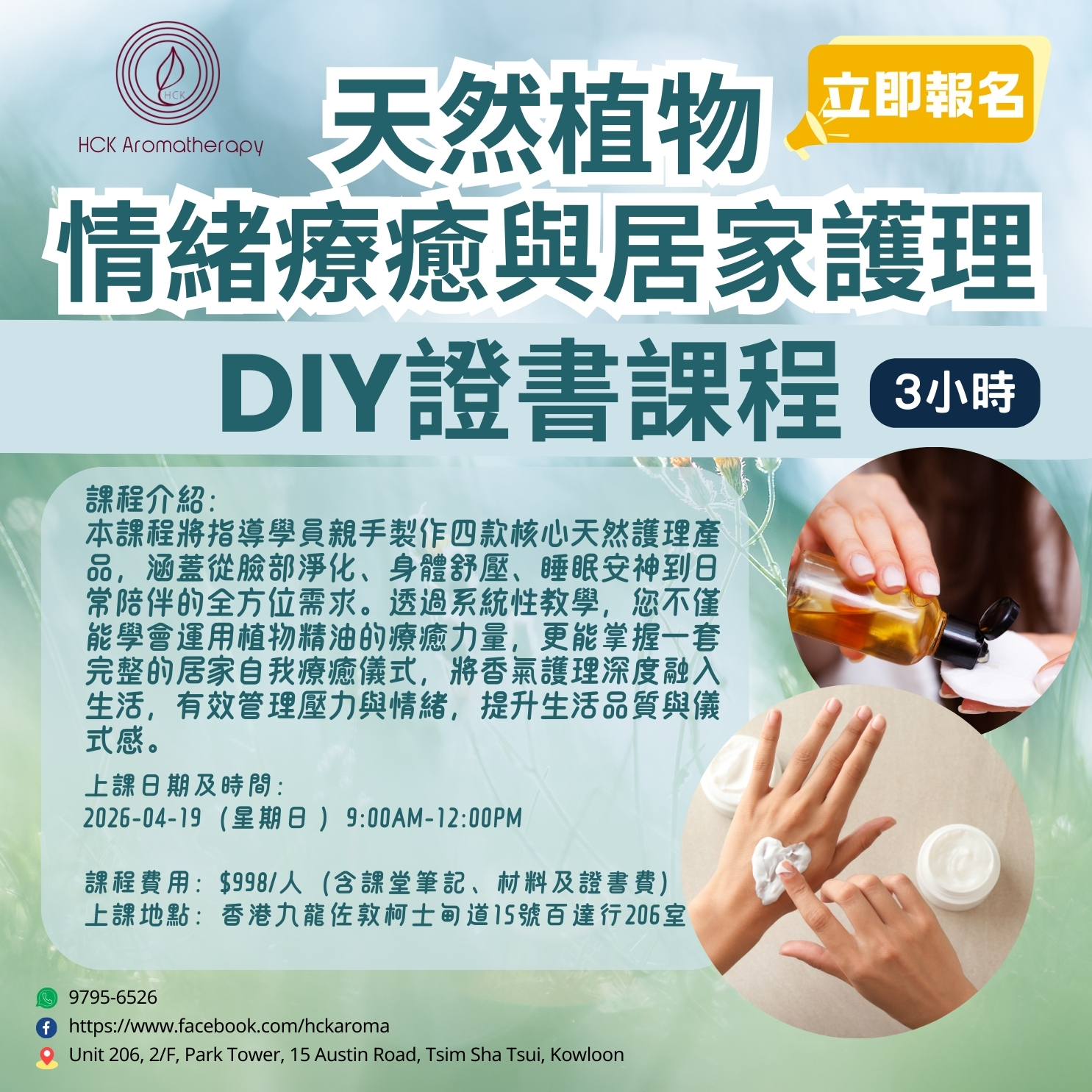 課程將指導學員親手製作四款核心天然護理產品,涵蓋從臉部淨化、身體舒壓、睡眠安神到日常陪伴的全方位需求。透過系統性教學,您不僅能學會運用植物精油的療癒力量,更能掌握一套完整的居家自我療癒儀式,將香氣護理深度融入生活,有效管理壓力與情緒,提升生活品質與儀式感。