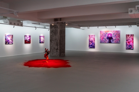 其中,一名強大的女性形象——虛擬角色「純愛戰士」——貫穿了整個展覽。她象徵著生育和繁衍,亦是王韞琛想像中的後人類時代化身。藝術家以佛教和印度教中掌管時間、毀滅與重生的宇宙母親摩訶迦利(Mahākālī)為原型,將這位戰士描繪成是人類曾經所追求的純愛之化身,以及新數碼世界中的數據之母。