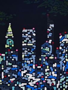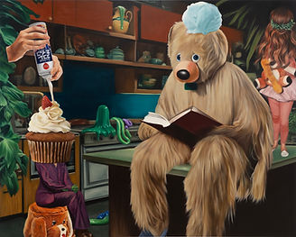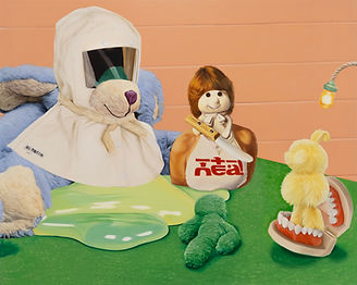 在黃竹坑空間中,展現十二位國際共鳴之聲:江上越以棱鏡薄紗溶解語言,將人面化作誤聽的虹彩;郝澤成從模糊照片吐納而出,使路燈化為無聲煙花;潤俠讓城市從其腕間即興演奏,無盡震動的線條奔流不息;溫柔的重力將陌生人與動物懸浮於同一片柔軟光暈;吳晶玉描繪幾乎相觸的肌膚之間那顫抖的半寸空氣;西祐佳裡將藉來的美國夢搬進無面日本玩偶的糖果色廚房;山口歷破框殺矩,讓筆觸徹底解放,躍出牆面成為呼吸的雕塑。亞歷山大·斯卡特將數位圖像轉化為色彩斑斕的消費批評,激勵觀者重新思考現代世界的美;奧古斯·威利亞透過「超現實直覺」的方式創造夢幻般的敘事,讓觀眾在奇妙的角色中探討情感;而餘宣則以動物圖像與城市設計的結合,探究當代生活的細微之處,形成一種反映社會複雜性的美學。在貢坎的作品中,那溫柔粉彩的世界與突如其來的、如手術刀般銳利的純黑之間的對比,正是他安靜張力的所在——寧靜被詭譎悄然打破。倫卡工作室以熱情奔放、用調色刀厚塗的熱帶流行色彩作畫,將風格化的薩爾瓦多人物裹上營地風格、載滿鮮花的華麗服飾與高聳大沿帽,從而顛覆大男子主義,並從殖民暴力中奪回喜悅。他們的並置為「時語」賦予了具體的形體:這是十年不懈地實踐鍛造的私人時間方言。這不是回顧,而是一口共享的呼吸;十種無法調和的語言,卻說著同一個急迫的未來,反映了從香港到世界的當代藝術脈動,並預告未來十年的輪廓。