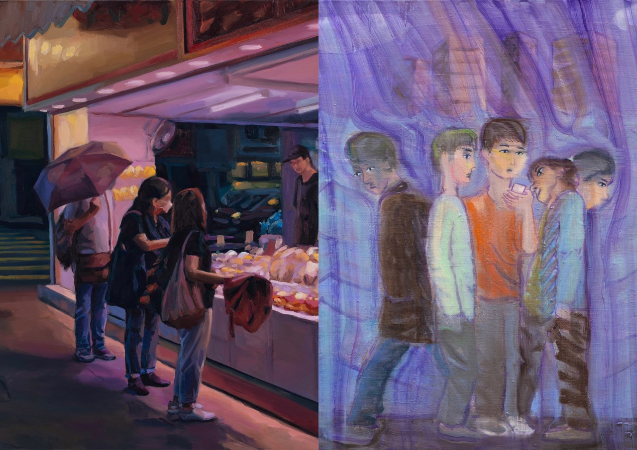 Cameron beautifully captures the charm of the ordinary in his oil paintings, focusing on everyday scenes that quietly tell untold stories. Even the most unremarkable urban landscapes—ordinary people and familiar street corners—radiate a captivating allure when reimagined through his artistic lens. This beauty is tinged with a haunting sense of fragility, evoking deep empathy and stirring connections from the very depths of the heart. Notably, the exhibition features three pieces created specifically for Hong Kong, where Cameron intentionally sidesteps recognizable landmark buildings. Instead, he directs his focus to the lively details found at the roadside or the stalls, capturing fleeting moments often overlooked due to their over-familiarity in this dynamic metropolis. Choi's figures leap from the canvas, infused with a sense of lost soulfulness; their actions seem a delightful blend of the bizarre and the humorous, rendered with a realism that draws the observer in. Delving into the depths of human psychology, Choi intertwines personal memories with cultural symbols, crafting a narrative that reflects our collective experiences. His art brings to light the quiet moments often drowned out by the cacophony of daily life, prompting reflections on identity and the fragments of ourselves that may be lost in the city's unyielding pace.