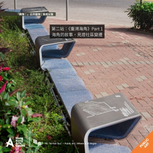 《重溯海角》公共藝術裝置以城市家具的形式,呈現大角咀海岸線的變遷。設計團隊透過結合地區歷史遺產及互動元素,記錄和反映社區在過去與現在之間的轉變與延續,並啟發大眾對大角咀未來發展的想像。