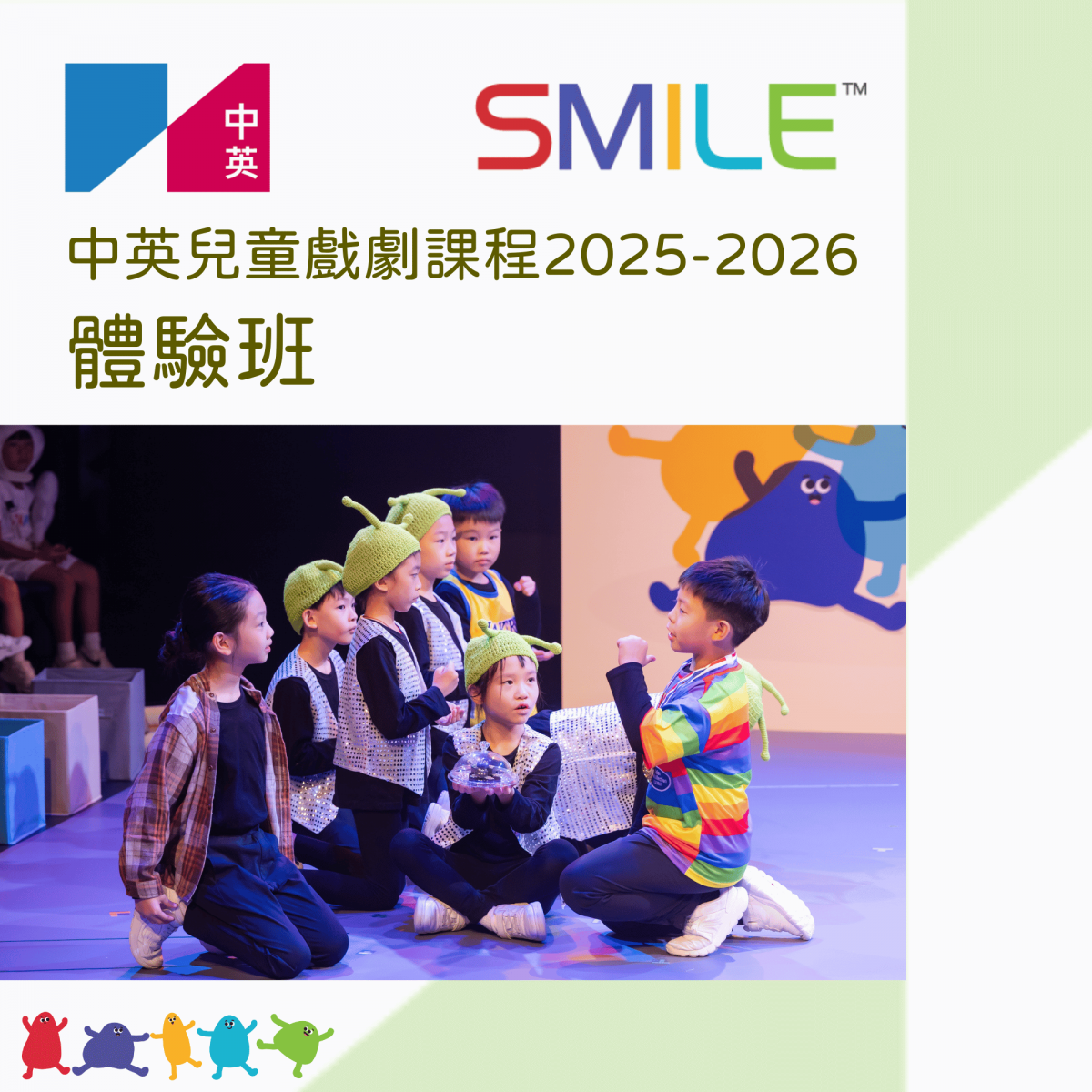中英劇團現誠邀家長帶小朋友體驗我們的 SMILE 兒童戲劇課程,名額有限,先到先得!