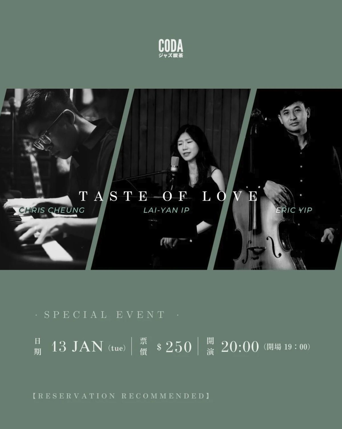 愛情如同即興爵士,充滿了不可預期的變奏與複雜的情感層次。這場名為「Taste of Love」的音樂會,將由三位風格各異卻同樣擅長敘事的音樂家——作曲家兼鋼琴家Chris Cheung、歌手Yan Ip,以及大提琴家Eric Yip——透過音樂,展開一場關於愛的情感探索。
