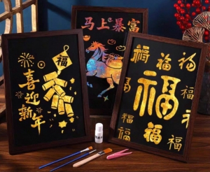 金箔畫,這一傳統非遺手工藝。在工作坊中,參加者運同一片片的金箔,小心翼翼地貼合在畫作上面,彷彿為平凡的畫面披上了金色一層的夢幻外衣。適逢新年,我們製作一條金馬,迎接新春。
