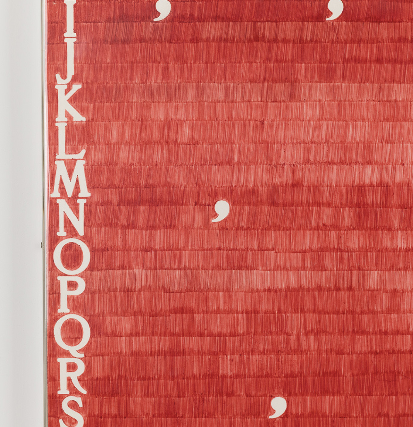 The exhibition's title, Ononimo – borrowed from Boetti's 1973 work – derives from a neologism he coined by merging the Italian anonimo (anonymous) and omonimo (homonymous). First written in blue biro in 1971 as a self-reflexive expression, it reflects Boetti's preoccupation with duality and the splitting of identity, a principle he formalised that same year by inserting an “and” between his names to become “Alighiero e Boetti.”