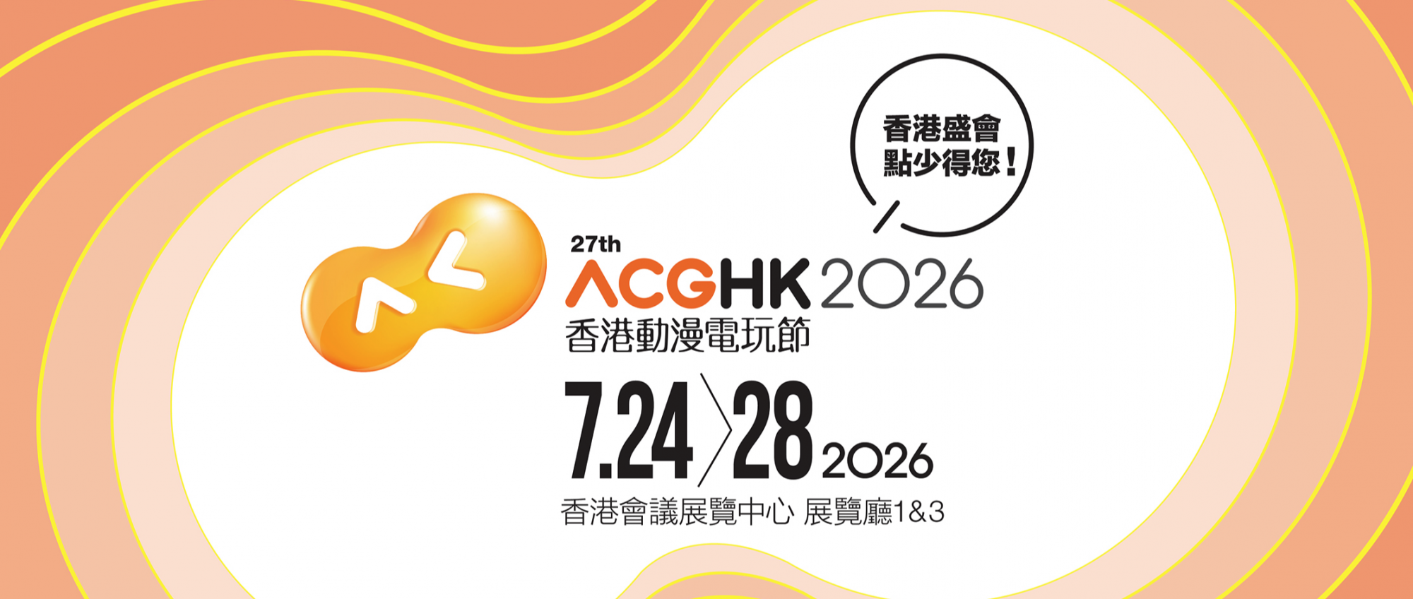 第二十七屆香港動漫電玩節(ACGHK 2026)將於 7 月 24 日至 7 月 28 日一連五天假香港會議展覽中心一號展覽廳舉行,今屆將推出更多嶄新精采的活動,讓一眾動漫迷印象難忘!